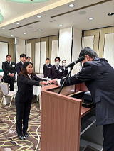 祝賀パーティーでは、YC南草津の中屋治代表が「奨学生生活での皆さんの努力と根性は、社会に出てからもきっと役立ちます。これからも頑張ってください」と激励し、乾杯の発声でパーティーがスタート。最後に森奨学会事務局長(労政部長)が「感謝の気持ちを忘れず、実際に『ありがとう』と伝えられる人になり、豊かな人生を送ってください」と言葉を贈り閉会しました。